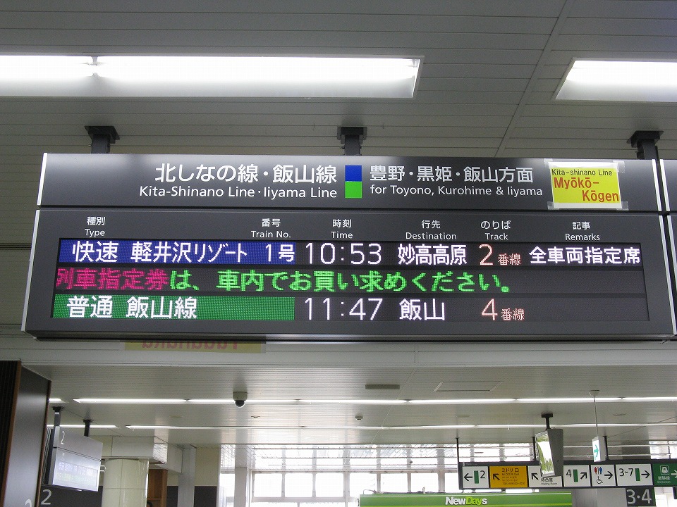 | 長野から約40分で妙高高原に着いた。 乗り継ぎ時間に余裕があるので外に出てみた。 「軽井沢リゾート1号」は、2両編成とはいえ立客も出るほど混んだ。 もちろん、立客にも指定席料金500円ナリが必要だ。 さっき、新潟への乗車券を買おうとしたら、駅員さんが「ツーデーパスの方が安いよ」と教えてくれたので、そちらにした。 妙高高原から新潟までの片道より、2日間新潟県内乗り放題のきっぷの方が安いんだね。 片道をただ利用するだけでもおトクなのだ(嬉)。 |