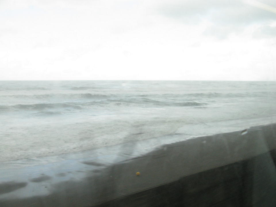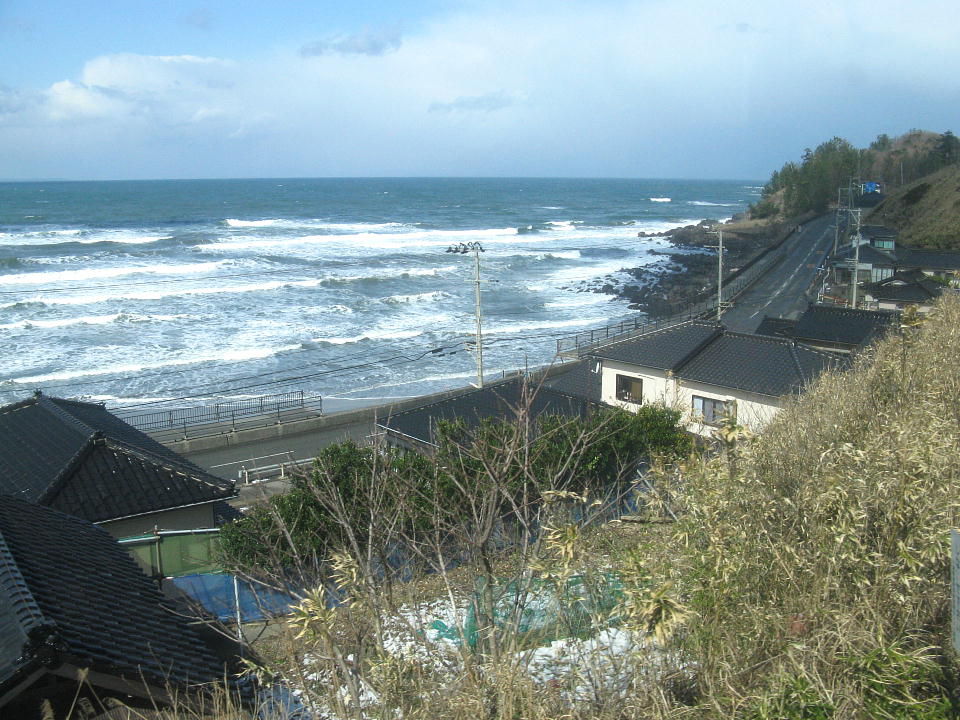 | 柿崎を過ぎて日本海が迫る。海はそれほど荒れていない。 |