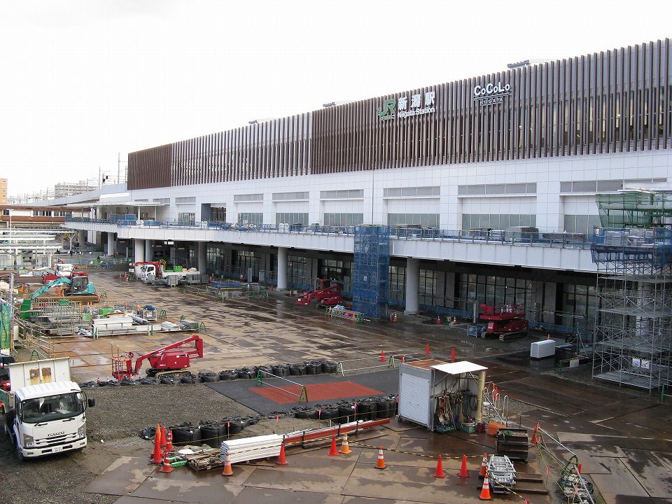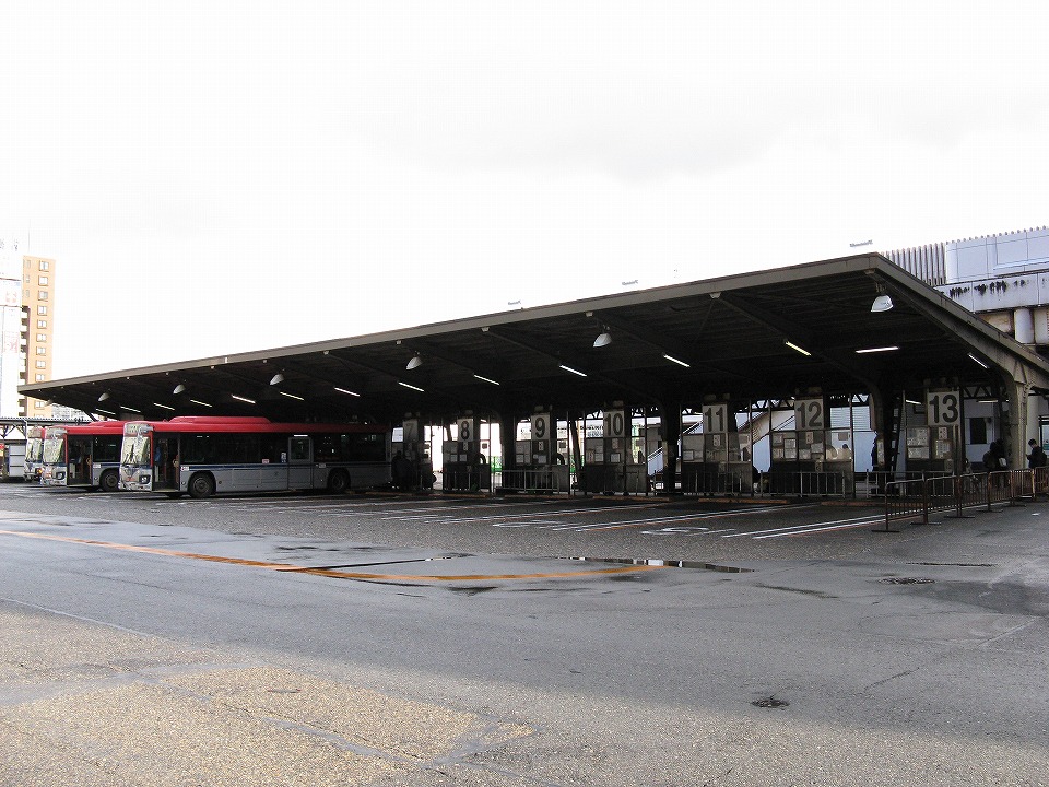 | 新潟駅の南北を貫く新しいバスターミナルが完成したことから、 この、新潟駅名物のスイッチバック式バスターミナルが3月30日をもって役目を終える。 |