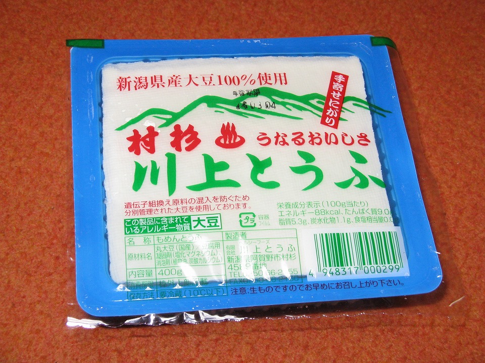 | 「川上とうふ」208円ナリも外せないね。 コクがあって旨いのだ。 村杉温泉にある製造元の直売所に行けば、いろんな種類の豆腐が買える。 |