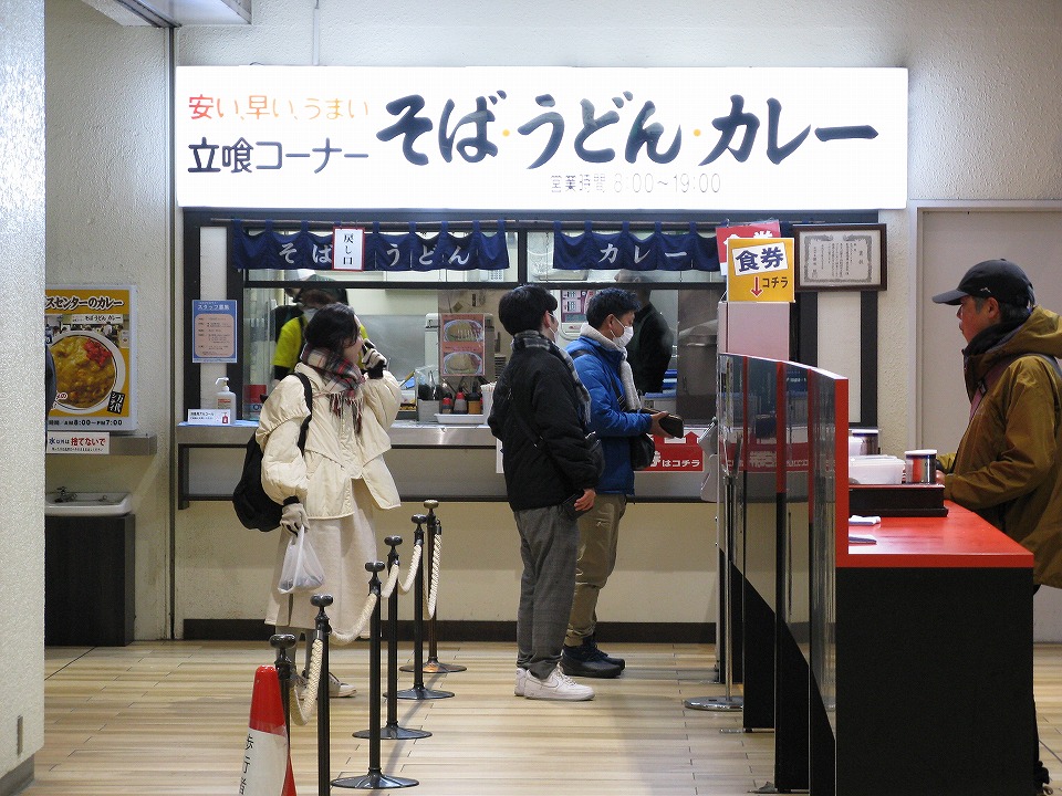 | 用を足す前に、万代シティのバスセンターにある「万代そば」でハラごしらえしよう。 |