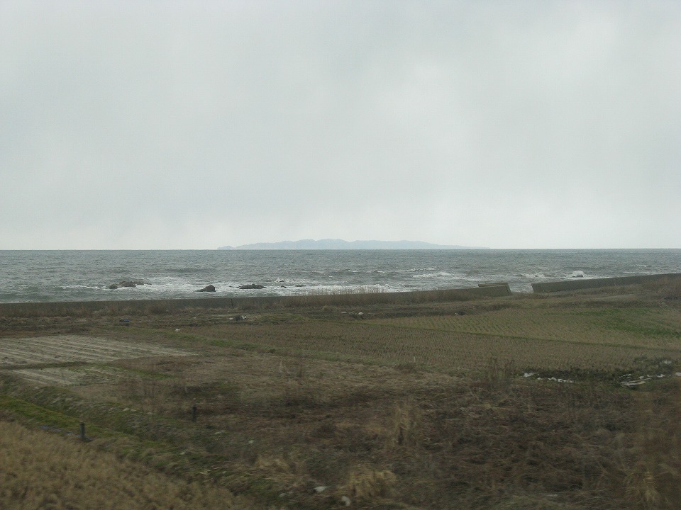 | 自由席はもちろん、指定席も新潟の時点でほぼ満席になった。 村上を出たら、左に粟島が見えた。 |