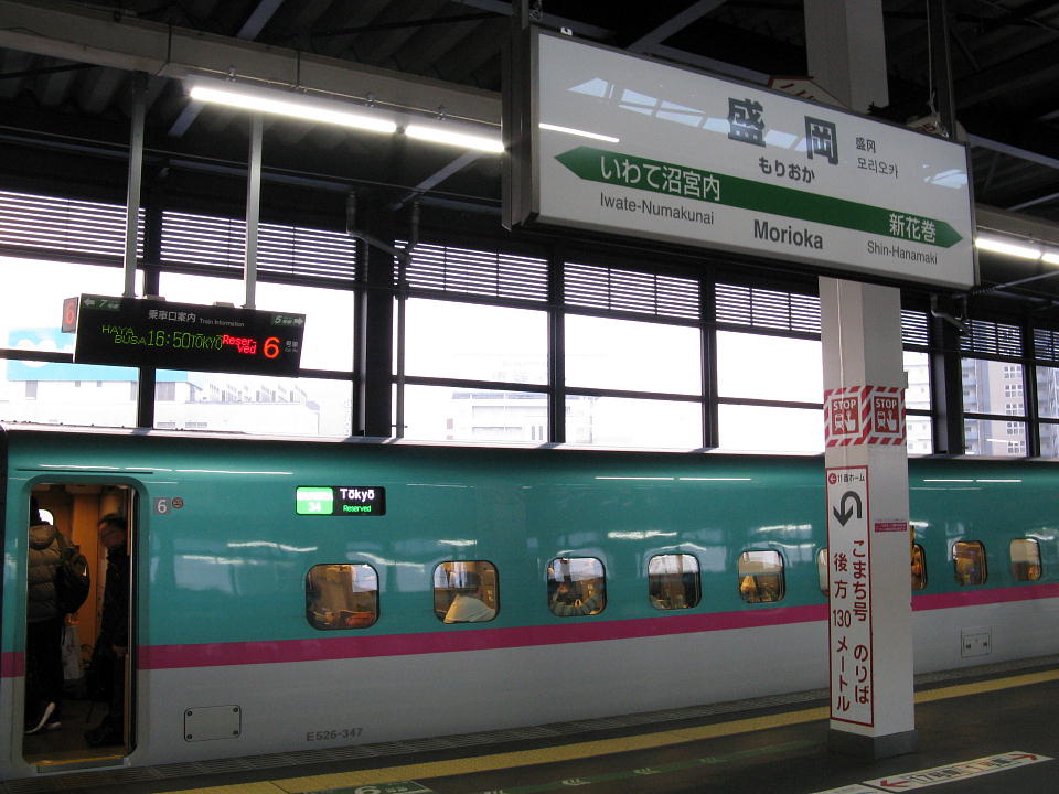 | 盛岡駅に停車中の「はやぶさ34号」。 |