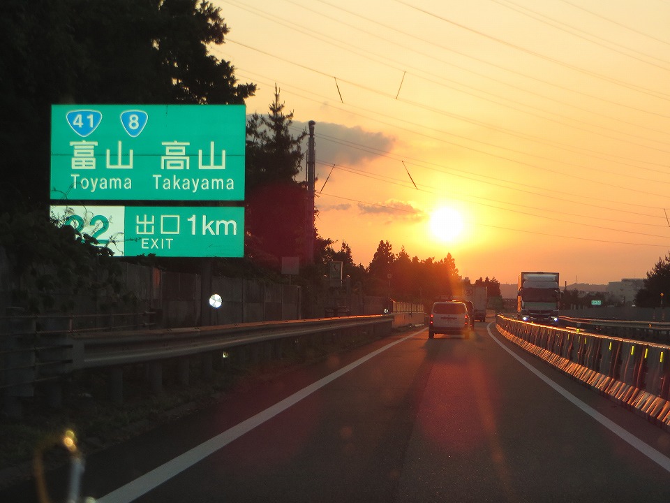 | 富山辺りまで来たら、きれいな夕日になった。 |