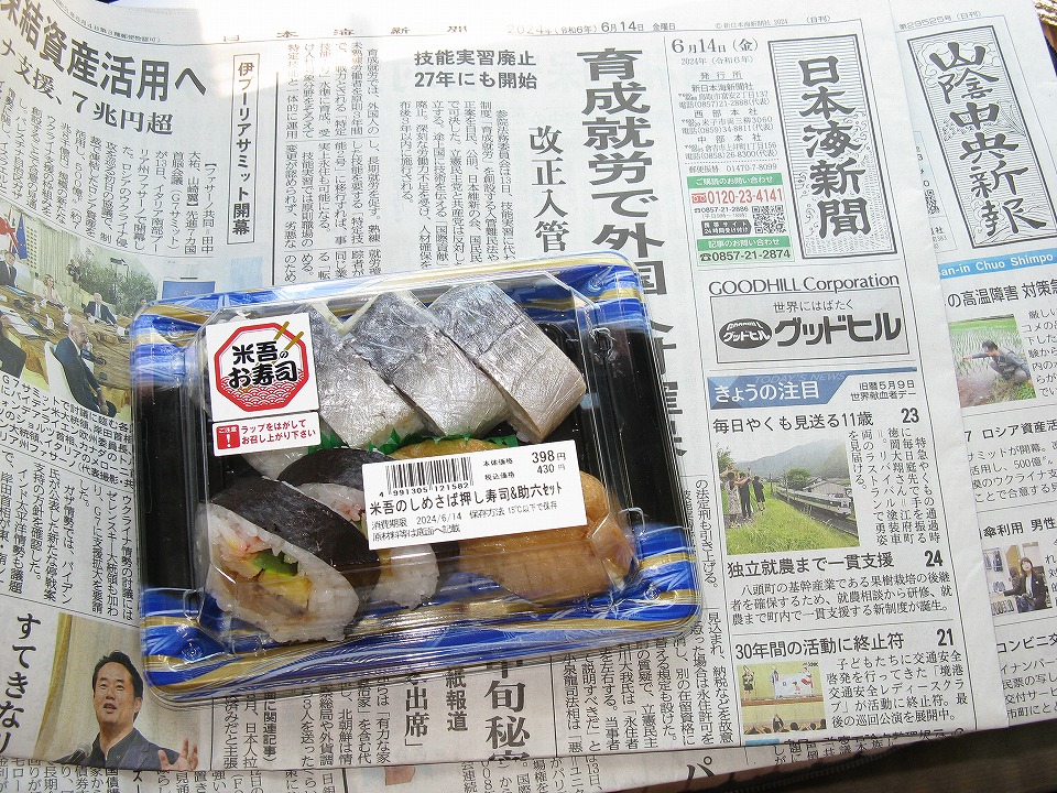 | 米吾のしめさば押し寿司430円ナリがあったのでGETした(ついさっき、大山おこわ喰っただろッ!)。 |