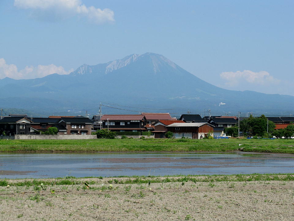 | 米子空港から次の撮影ポイントに移動する。 大山は少し霞んでいるものの、まぁまぁ見える。 この大山をバックにして撮影しているテツもいるだろうね。 |