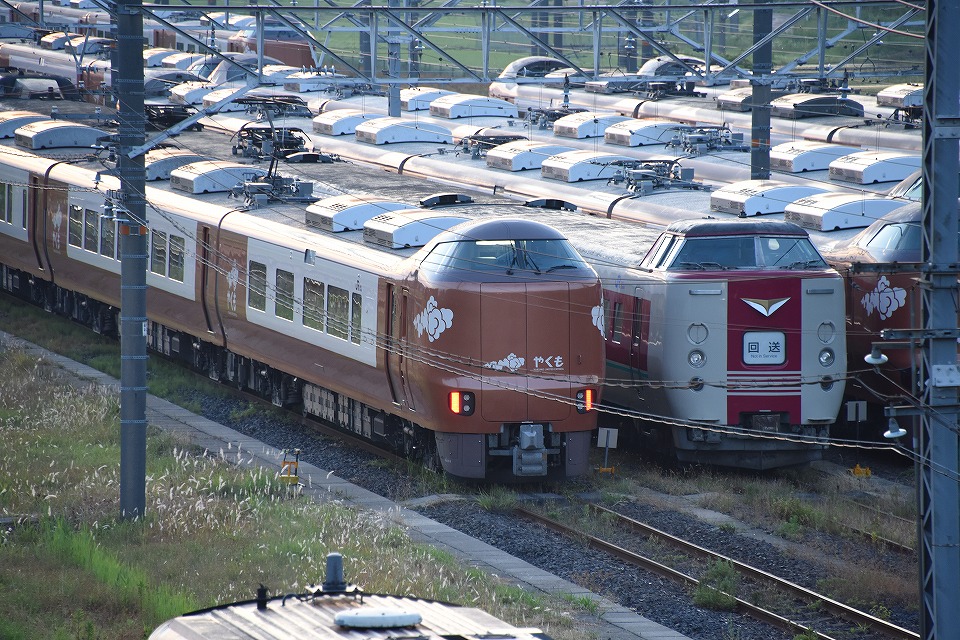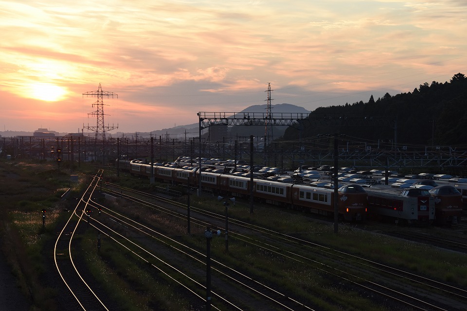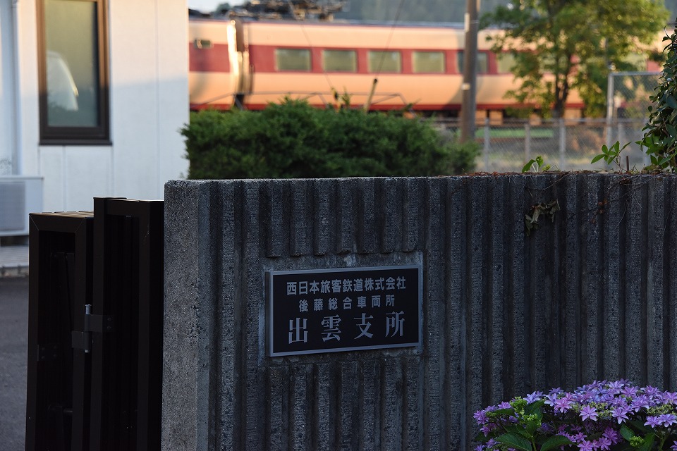 | 西出雲駅近くのコンビニのPで仮眠して、日の出の頃に出雲支所にきてみた。 「サンライズ出雲」の予備編成がいた。 |
