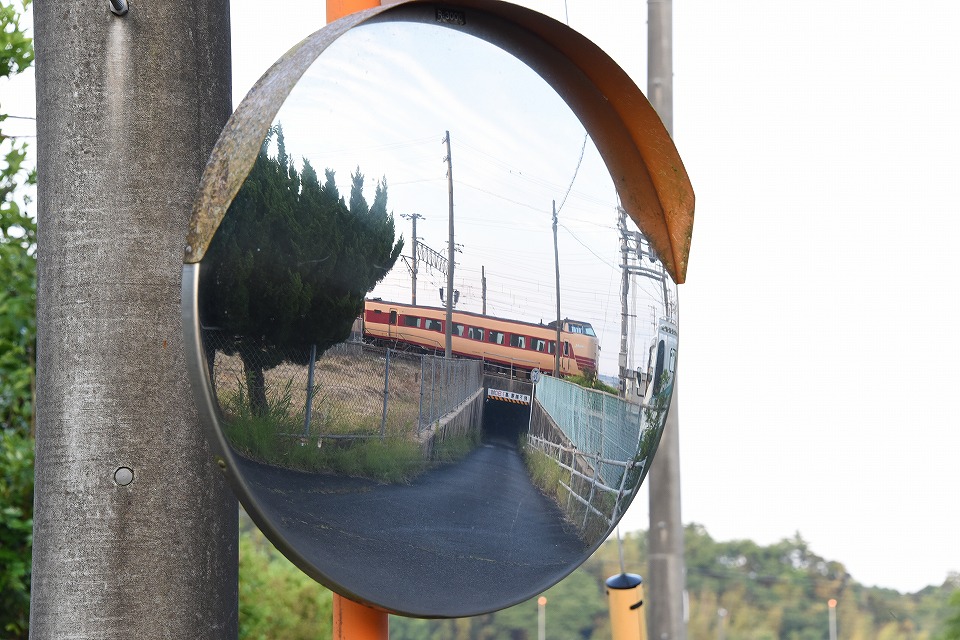 | 国鉄色の1号車側。 カーブミラーで。 |