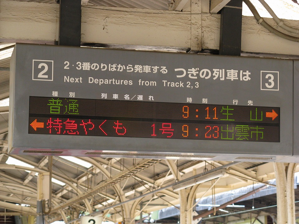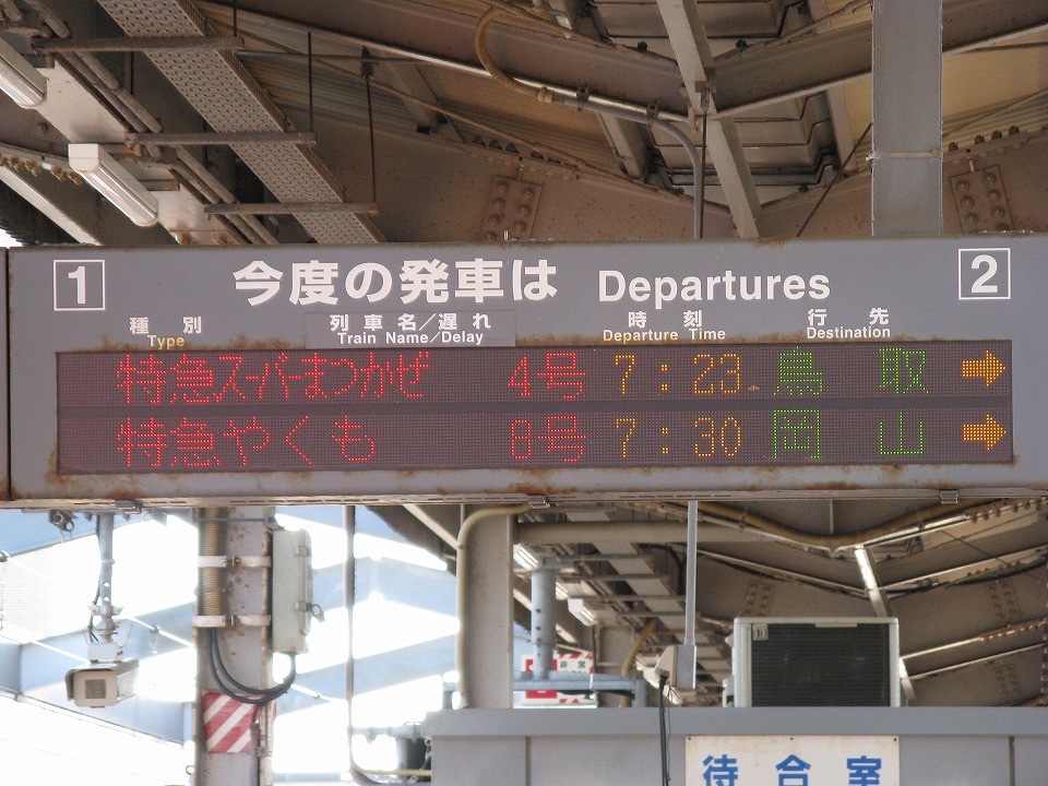 | 「やくも1号」の発車案内。 |