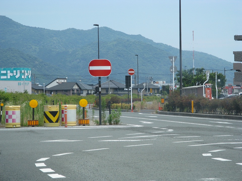 | ラーメンを喰い終え、国道9号を松江方面に走る。 出雲市内のバイパスで横長の「進入禁止」の標識を見た。 これって正式なモノ? |