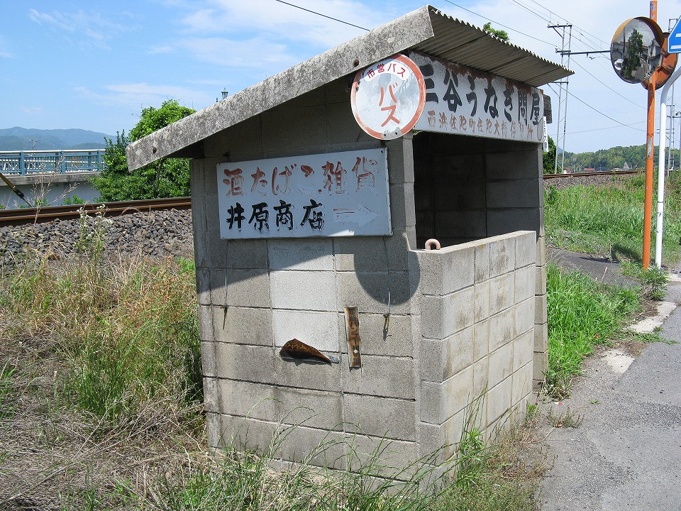 | 松江市内の国道431号沿いにある松江市交通局の「佐陀大橋」バス停。 ストビューで偶然見つけて、取材したいな~と思ってたんだ。 なかなかおもしろいバス停だ。 |