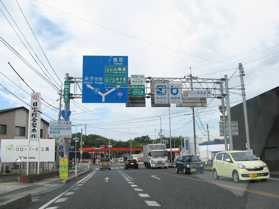 | 全く何でもないところにある島根と鳥取の県境を越えて、 米子市に入るぅ。 |