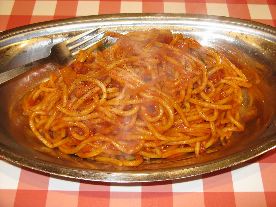 | 敦賀では給油をして、北陸道を延々と走り、上越まで帰ってきた。 行きに喰いたかった「パンチョ」でナポリタン並890円ナリでおやつ。 |