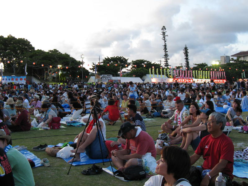 | まだ明るいが結構な人が集まってきた。 地元の一大イベントである。 |