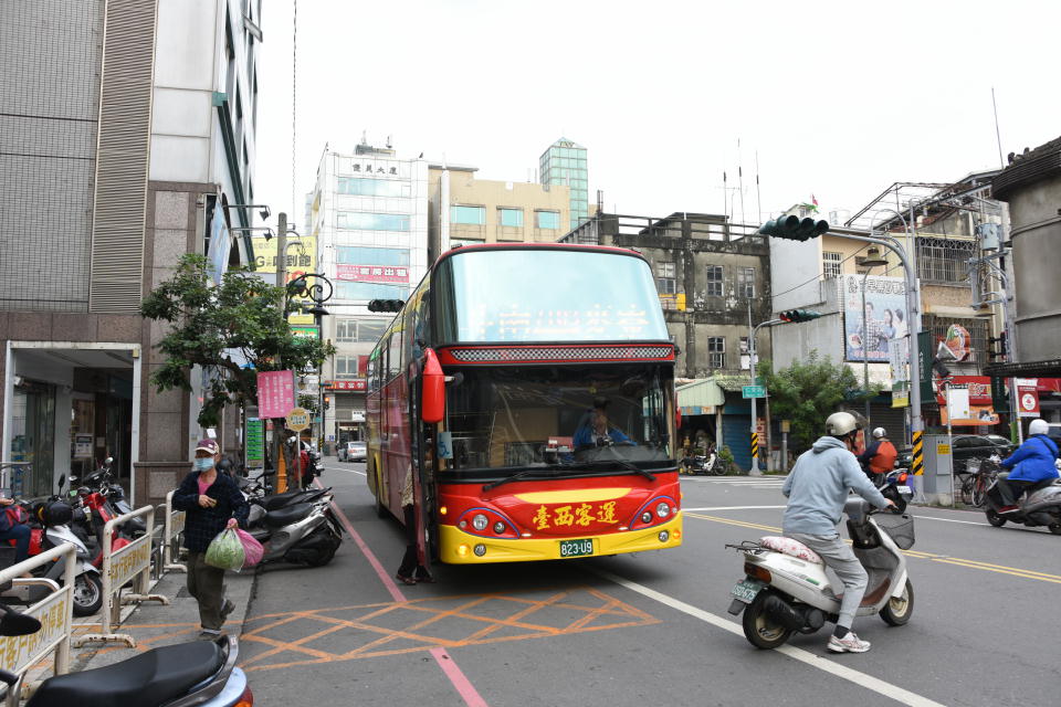 | 雲林車站(=駅)から「2階だけ」バスに乗り、約15分でサトウキビ列車が走る虎尾(フーウェイ=こび)の町なかに来た。 悠遊卡(ヨウヨウカ=スイカみたいなもん。)使用で、21圓。 |