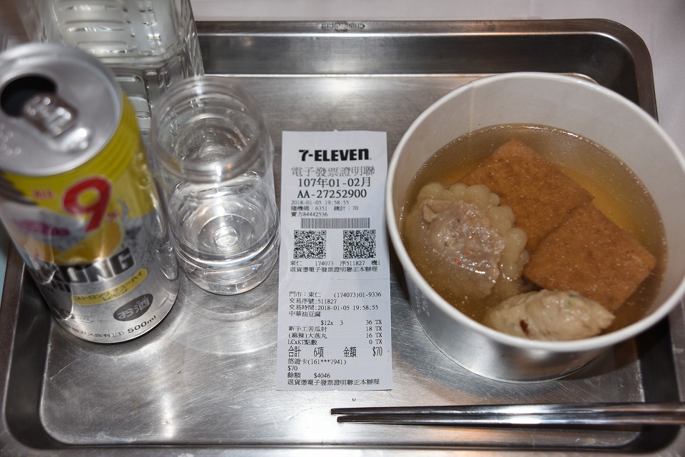 | シャワーを浴びてさっぱりしたら、さあ呑むゾ。 日本から焼酎甲類と酎ハイを持ってきた。これが重いのなんの。 台湾では、ビール以外で俺の趣向に合う酒が基本的にないのが残念。 近くのイレブン屋で「關東煮」(=おでん)も買ってきた。 俺が好きな魚のつみれはもうなくなっていて、「中華油豆腐」(=厚揚げ)があったので、 他と併せていくつかGETしてきた。 あったかくて旨いのだよ。 こうして、虎尾の第1夜は更けてゆく~。 明日は雨の確率30%だけど、どうなるかね~。 いよいよサトウキビ列車の取材だよ。 |