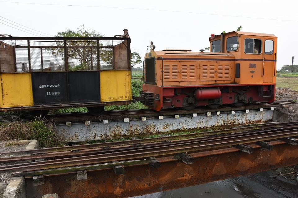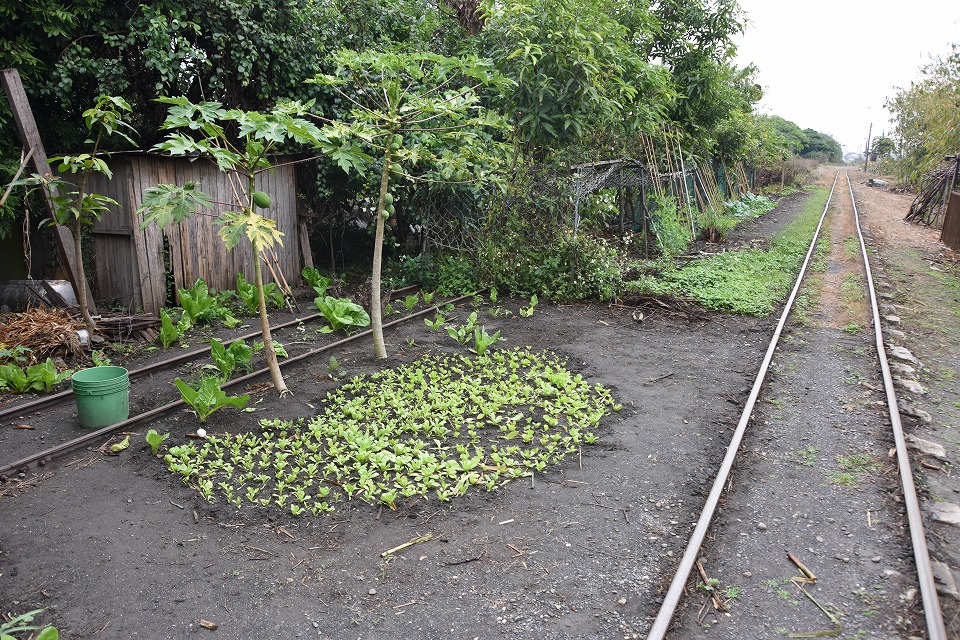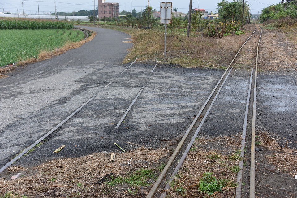 | まだ薄暗い朝6時半頃から取材を開始した。 どんより曇っているが、なんとか降らずにいる感じの天気。このままもってほしい。 製糖工場を8時頃に発車する「1便」を沿線で撮影するため、早めに行動する。 まずは起点の製糖工場へ行き、そこから線路伝いに歩いたよ。 この写真は、昔、別な路線(北港線)が左に逸れていたのが確認できる場所で撮影したもの。 もちろん、右が現役の馬公厝線。 |