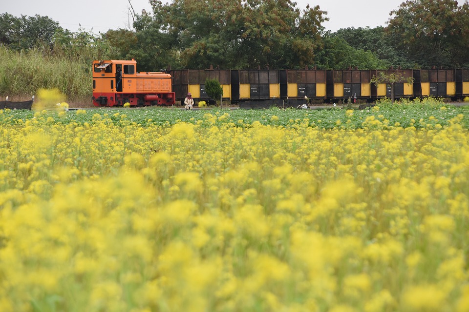 | 台湾での1月は、菜の花が盛り。 こういう写真を去年から撮りたかったんだよね。 でも、意外といい場所がなくて、やっと見つけたところで1時間近く待機していた。 人の往来なんてないに等しかったのに、 いざ列車が来るってときに、おばちゃんが畑のメンテに来た…。 しかも、ちょうどアングルに入るところに佇んでくれちゃって…。 おばちゃんの畑だから「どけ」とも言えないしね。 人生って、こういうもんですね。 列車は、空車でサトウキビを積みに向かう。 |