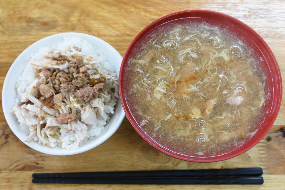 | 朝から何にも喰っていなかったんで、お馴染みの「虎尾魷魚羹」で、 鷄肉飯(25圓)と綜合羹米麵(50圓)を喰ったら、ホッとしましたね。 さて、明日はどうしようかね。 相変わらず。天気予報は雨だよ~。 |