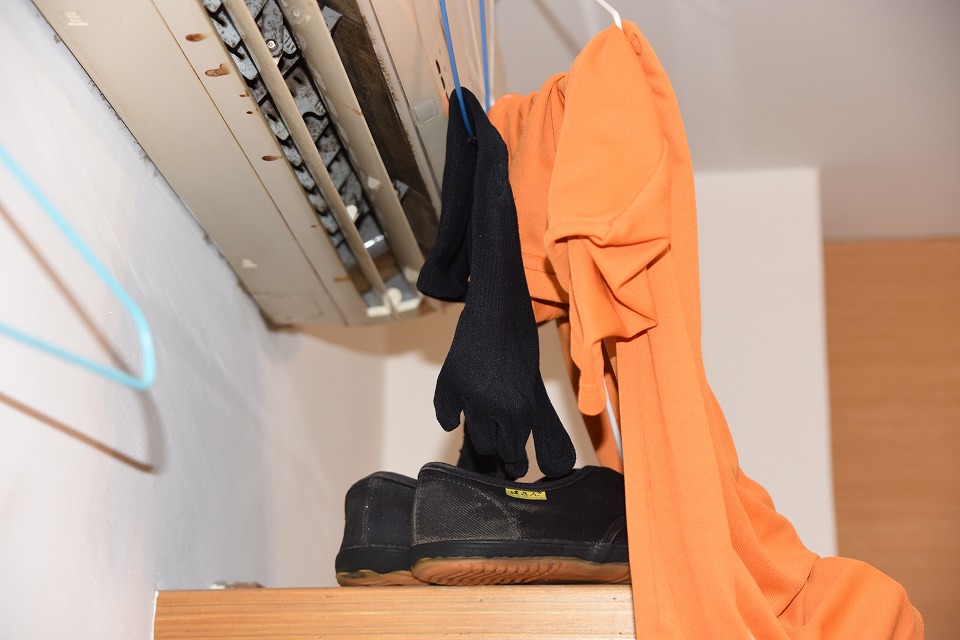 | 昨日からエアコンの送風の風に当て続けた洗濯物と靴。 ほぼ乾いた! わはは。 |