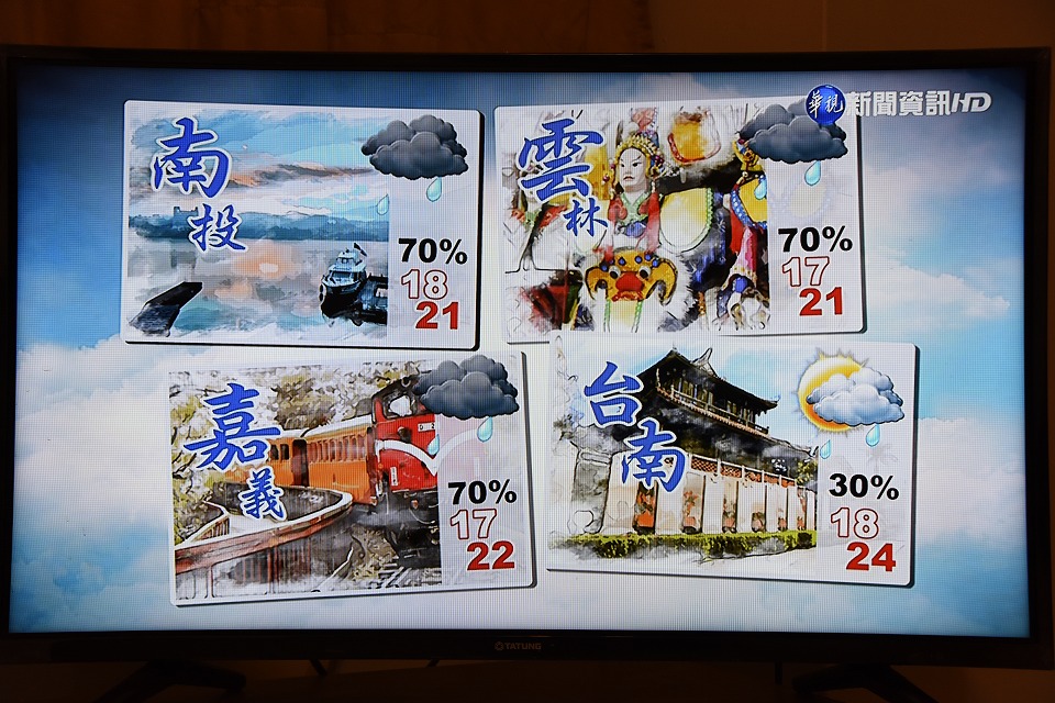 | 今日も雨の予報だ~。雲林の雨の確率は70%だね。 外はしっかり雨が降っている。 さて、どうしようかな。 |