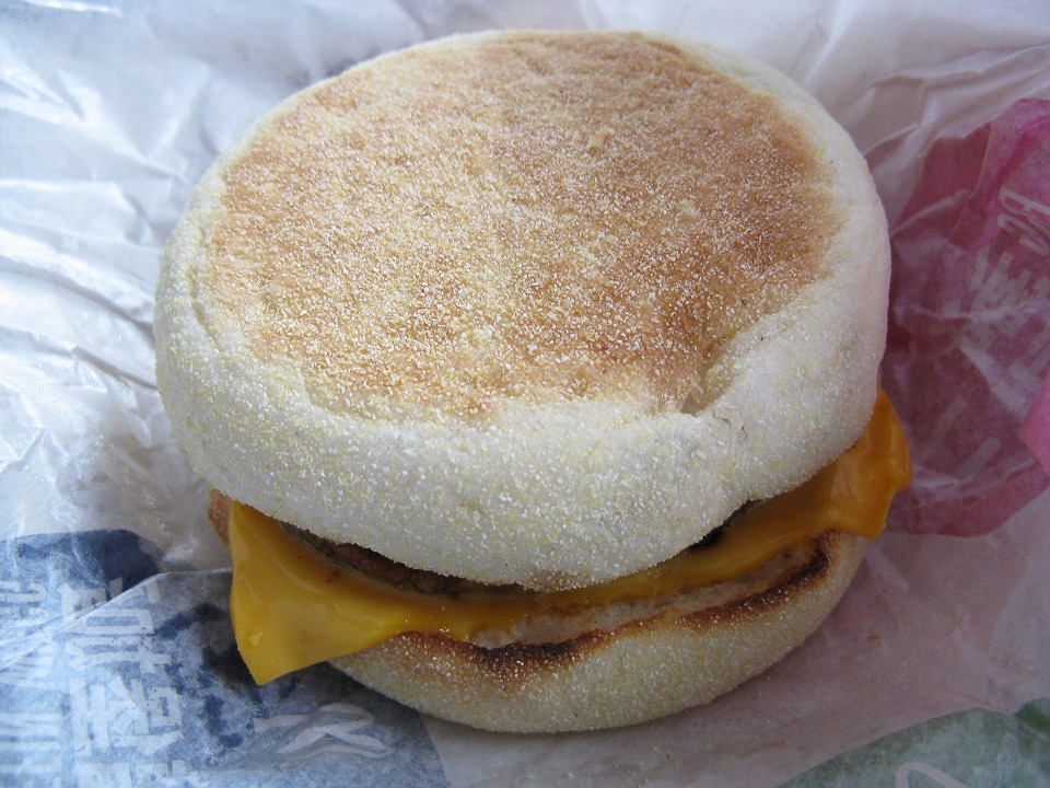 | バス停に向かう途中で、まずはハラごしらえ。 いつもならコンビニに入るところだが、虎尾のトイレ事情の調査を兼ねて、 ケンタッキーとマックに寄った。 これは、マックのソーセージエッグマフィン(45圓)。 ケンタッキーは7時からの営業で、店内にトイレあり。 マックは24h営業で、シャワートイレあり、でした。 |