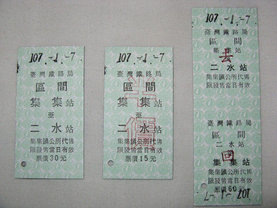 | GETしたきっぷのほんの一部。 昔ながらの硬いきっぷを硬券(台湾では「硬票」。)といいますが、 台湾で、記念用以外の通常発売しているのは僅か3駅だけ。 そのうちの2駅が、今日訪れた支線(集集線)にあるんですよ。 書き始めるとキリがなくなるので、この辺でヤメます(苦笑)。 |