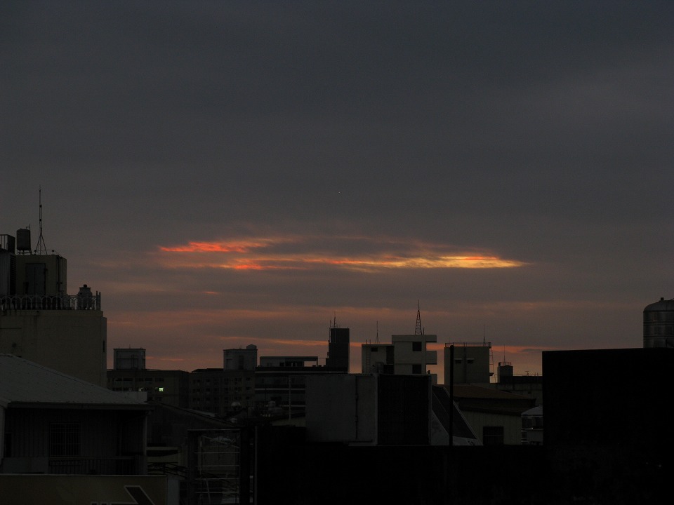 | 無事に宿に戻ったよ。 今日は、結果的には雨は朝だけで、夕方にはこのような僅かな夕焼け(?)も見られた。 天気予報も、明日は「晴れ時々曇りか雨」に変わったので、 サトウキビ列車の取材に行けそうだね。 今、呑みながら虎尾の宿でこのページを作ってます。 まだ19時なのに、もうかなり眠いよ~。 |