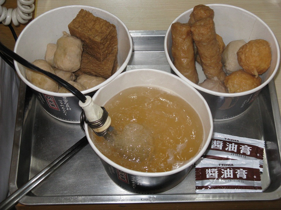 | 眠いんだけど、ハラが減って眠れないので、關東煮(おでん)にしちゃうんだな(笑)。 2店のイレブン屋で、俺の好きなつみれをメインに、つゆたっぷしでいくつかGETしてきた。 これを、種と出汁を分け、まず出汁を携帯電熱器であっためる。 ホントは出汁は沸騰させちゃいけないんだけど「写真映え」のために沸騰させた。 ここに、おでん種を入れて、熱々のを呑みながら食すのは、いわゆるひとつのシアワセなのですね。 |