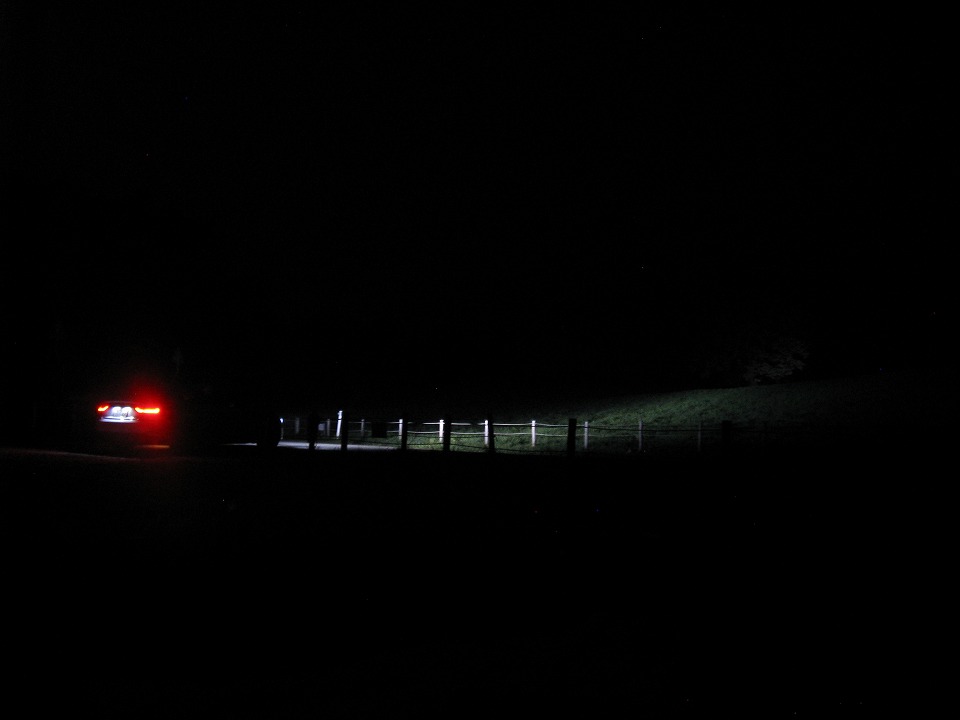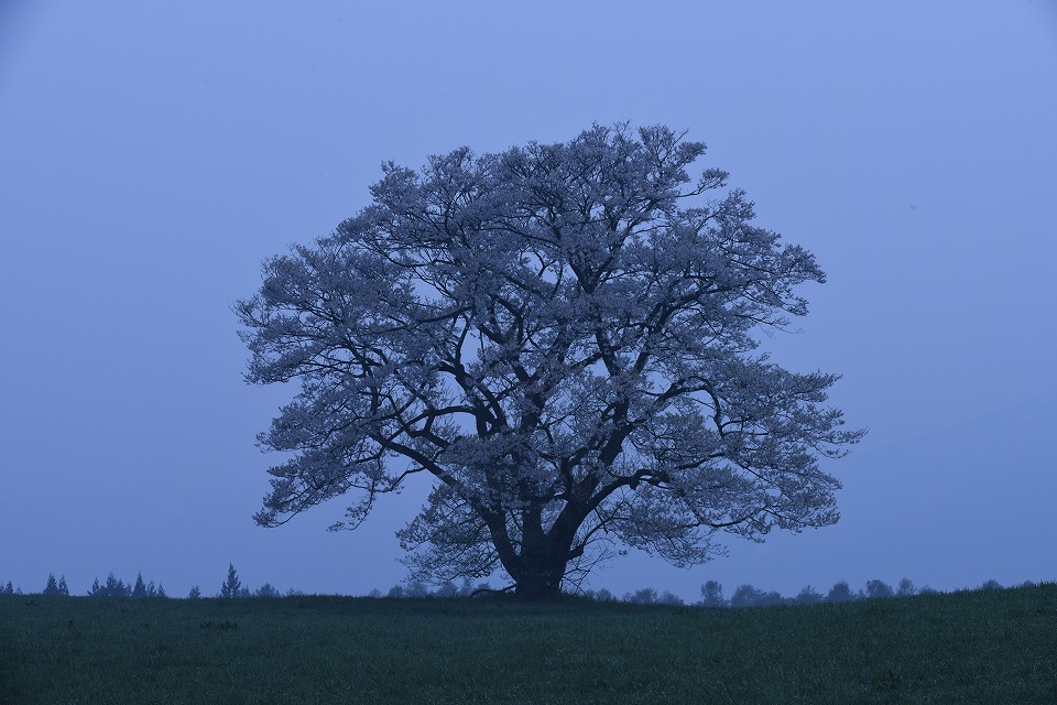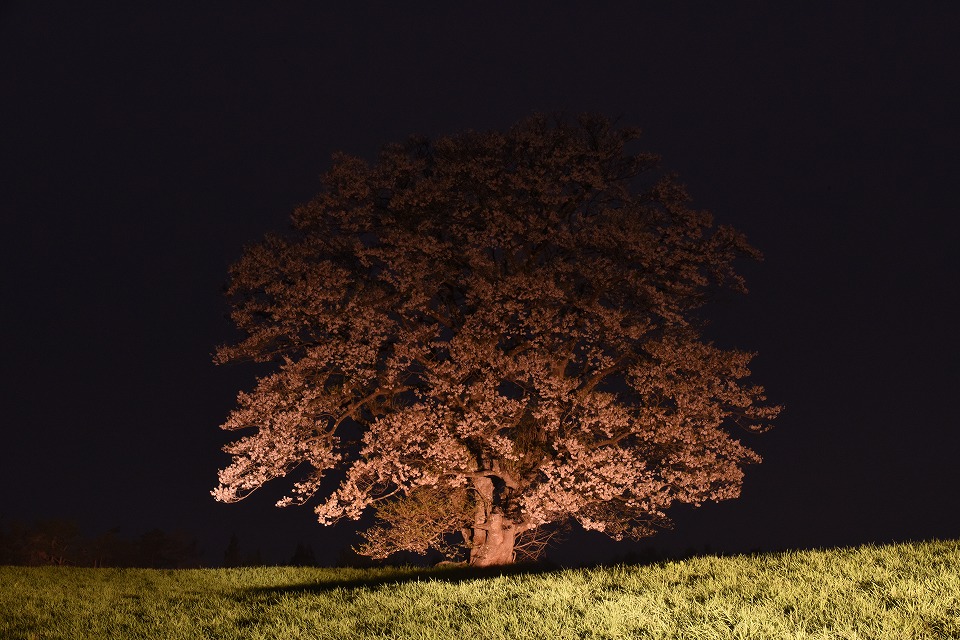 | 16時半に新潟を出発して、のんびり走ってほぼ24時に 岩手県雫石(しずくいし)町の小岩井農場の「一本桜」の駐車場に来た。 先客が2組3人ほどいて、真っ暗な中で写真を撮っていたり、仮眠していたりした。 写真を撮っていたチームに断って、クルマのヘッドライトで桜を照らして撮影してみた。 「一本桜」は見事に満開だったが、この木は小高い丘にあるため、もっと上まで光が届けばよかった。 クルマの前輪を何かに乗り上げさせて光軸を上げればいいのだが、うまくいかなかった。 ISO1600 f16 60秒 130mm |