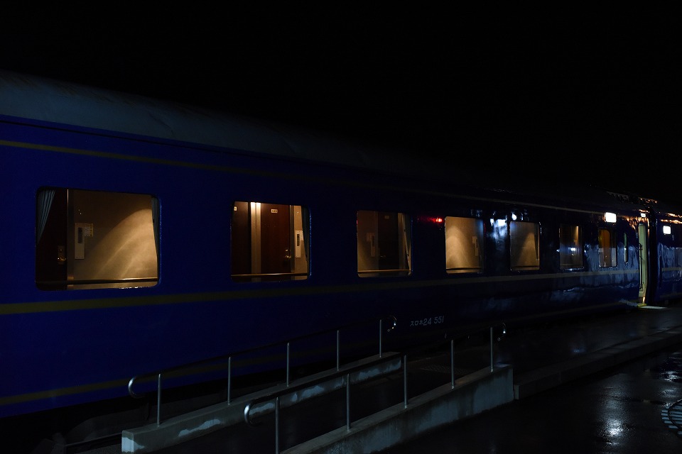 | A寝台の車両。 本当に途中駅に停車しているように思えるね。 |