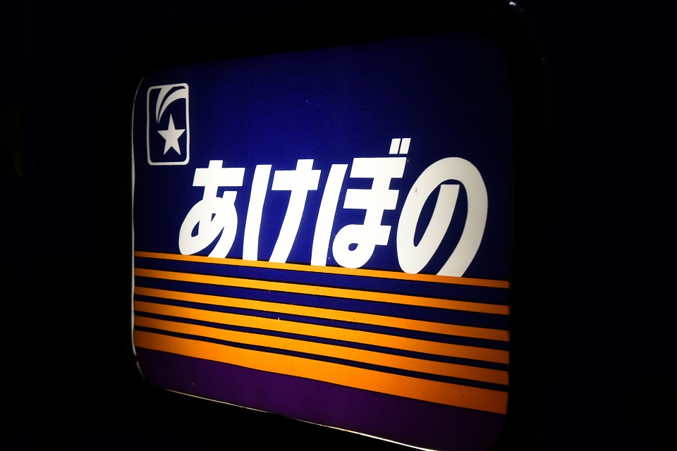 | 「あけぼの」のテールサイン。 これを見ると毎回涙が出てくる。 現役の「あけぼの」には、60回以上も乗ったもんね。 |
