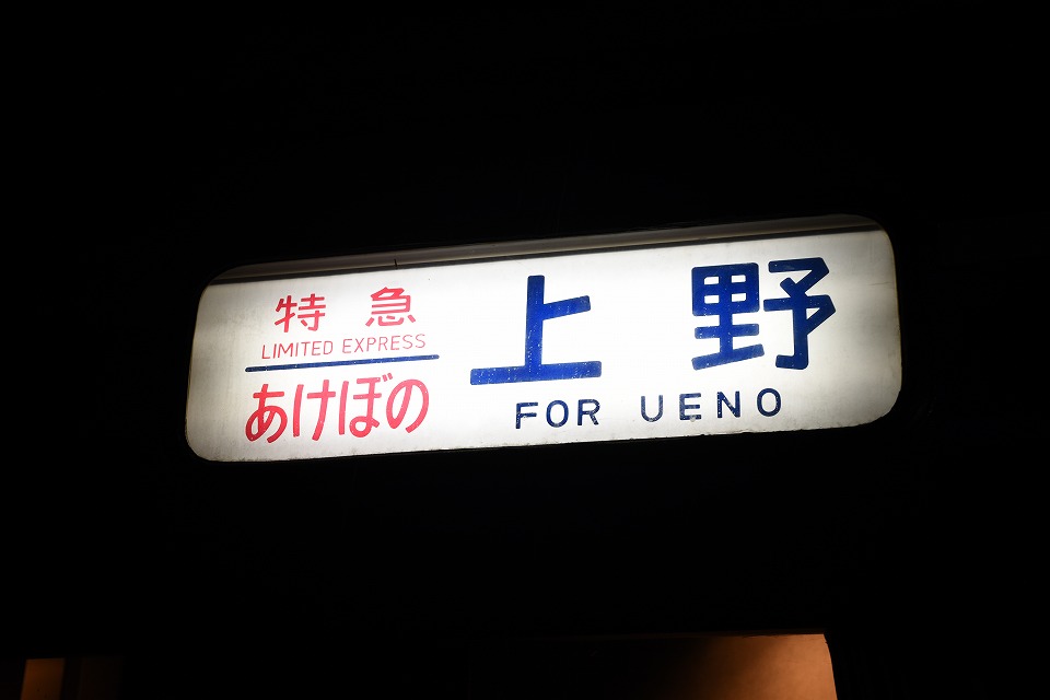 | 場所柄、秋田県内ということもあってか、「あけぼの」の方向幕は上野行きのものがセットされている。 青森行きだとここではすぐ近くだから、風情に欠けるのかな。 でも、他の車両は、「あさかぜ」博多、なんてなってるよ。 【翌日追記】 よく確認したら、「あけぼの」青森ってのもありました。 |