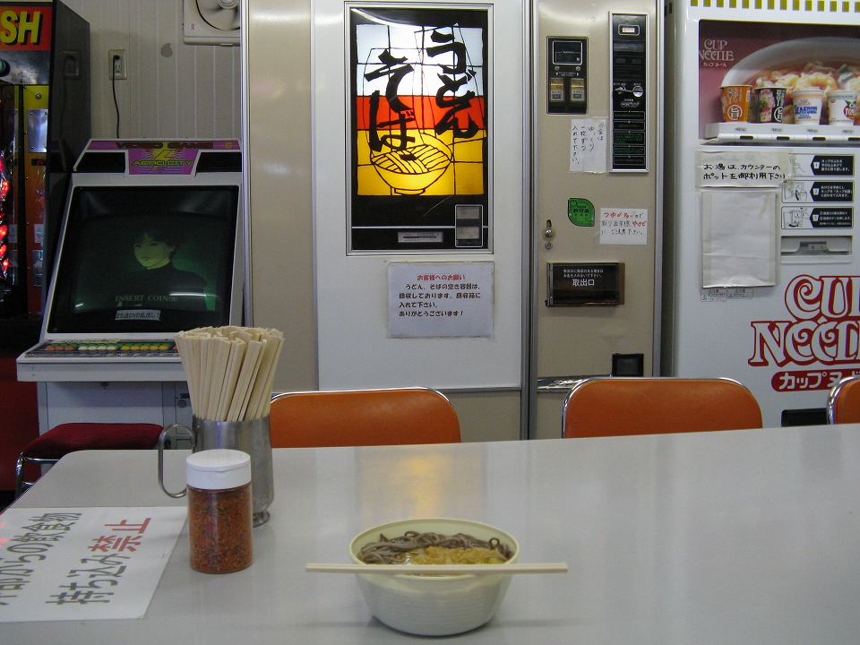 | 5月1日はメーデーで、信州で仕方なく「お散歩」のお付き合いをしてから、 GW後半の東北旅をスタートした。 新潟県村上市の国道7号沿いにある「ペガサス」というコインスナック的な店に 全国的に貴重な「うどん・そばの自販機」があるので、晩メシがてら立ち寄った。 写真は天ぷらそば(350円)。 自販機は健在で、できあがり時の「チン」音がちゃんと鳴るし、専用容器も使われている。 ただ、店内は場末なオトコの世界が広がっているので、女子はちょっと入りづらいかも。 「アタシャ気にしないよ〜」ってな方なら、自販機のうどん・そばを堪能できると思う。 |