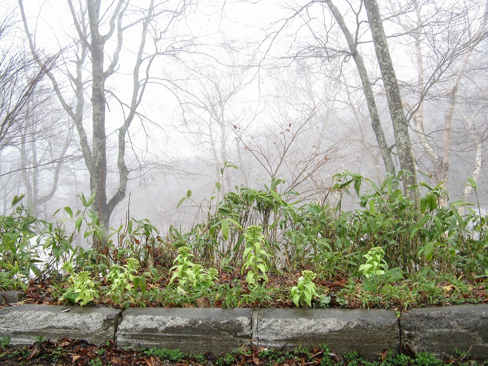 | ひとまず、十和田湖へ向かう。 周辺は濃霧で、運転がちょっと怖い。 道沿いでは、あちこちでフキノトウが随分成長していた。 関東ナンバーなどのクルマが、路肩に停めて摘んでいたが、 こんなにおっきくなっちゃ、旨くないよ。 って、そういうことも都会の人たちゃ分かんないか…。 |