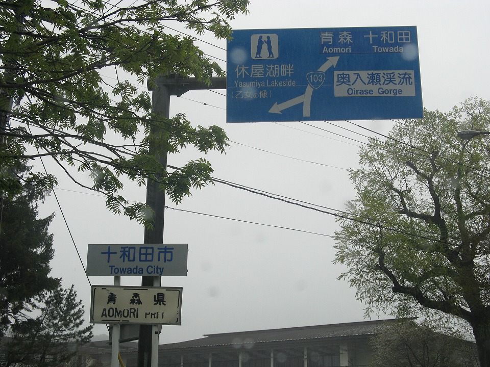 | 下北半島の「右上」の辺りの尻屋崎を目指す。 下の地名は、ローマ字で書かれてなきゃ読めね〜ゾ。 詳しくは書かないが、青森県は「青板」の表示地名に一貫性がなく、 俺のような観光客は戸惑うゾ! |