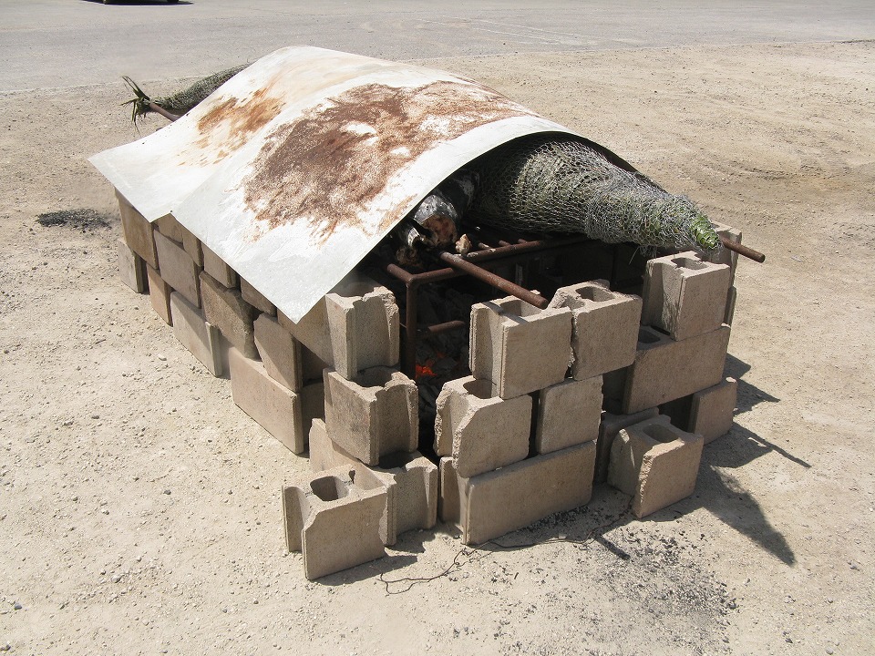 | 陸に戻ってきたら、カジキの丸焼きがいい匂いを漂わせていた。 夜の振る舞いが楽しみだ。 |