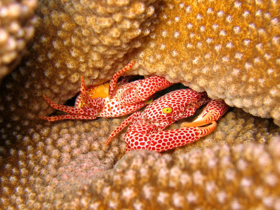 | オオアカホシサンゴガニ。 左上の個体は抱卵してる? |