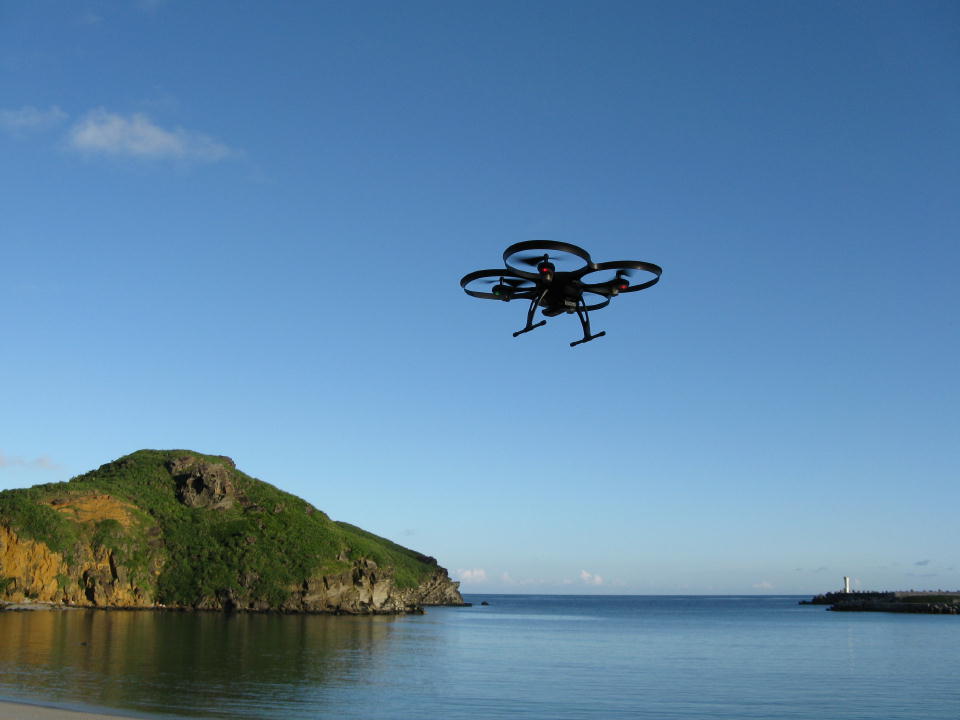 | 朝はほとんど無風だったので、朝メシ前にドローンを飛ばしに、いそいそとナーマ浜へ来た。 今日のダイビング終了したら、台風対策で船を陸に揚げちゃうので、 予定より1日早い与那国島でのダイビング最終日となった。 〆の日がよく晴れて、よかったよかった。 |