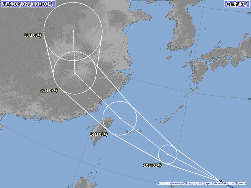 | う〜ん、ほぼ直撃コースだねぇ。 ってことで、天気がいいのも今日までだろうね。 |
