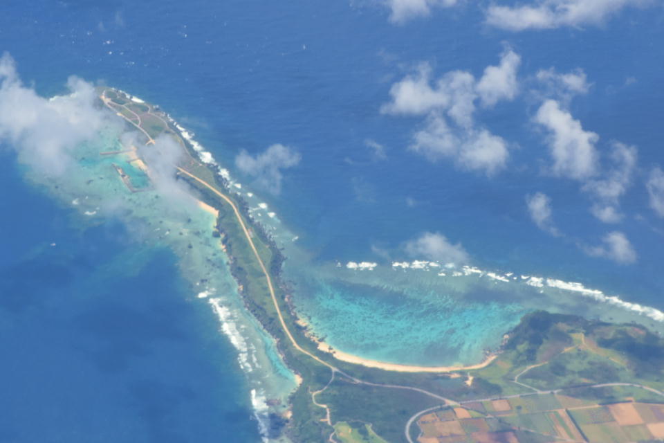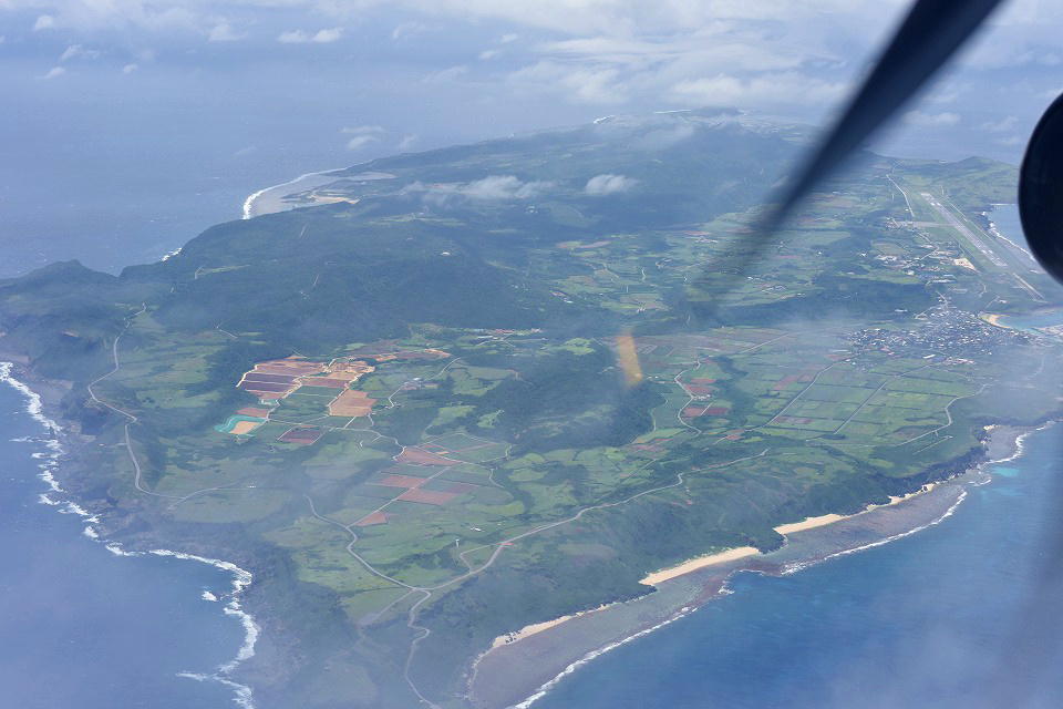 | 与那国島を離陸して、約30分で石垣島に着く。 この写真は、石垣空港に着陸する手前の海。 |