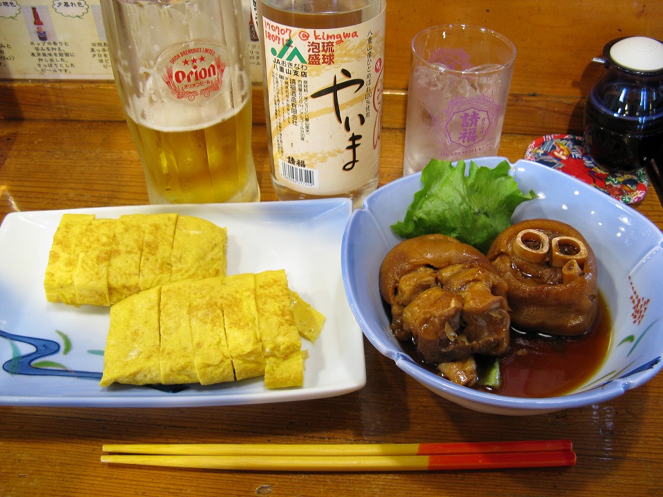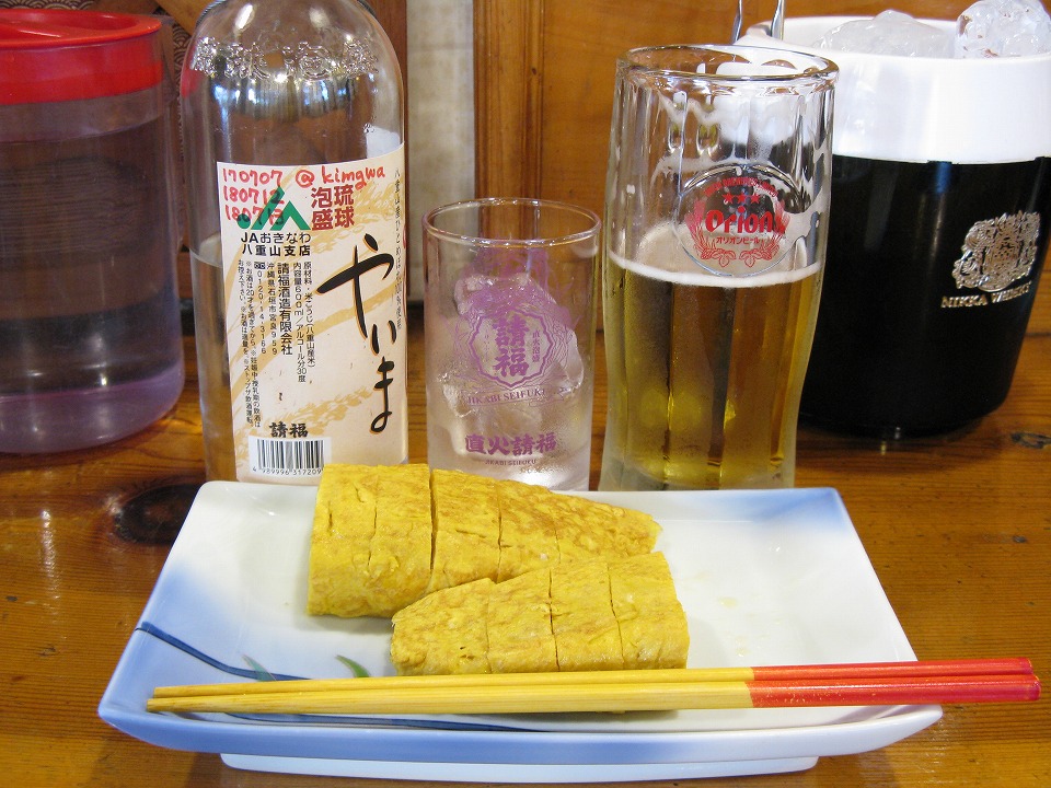 | やいまでのナツが終わり、最後の夜も「南ぬ島」で呑んだ。 3日連続のピリ辛卵焼き。 で〜じま〜さんど〜。 |