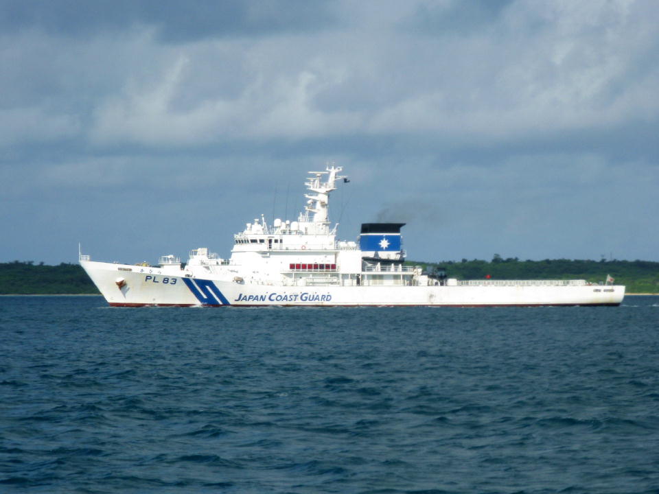 | 海上保安庁の巡視船「かびら」が竹富島北沖を東進する。 |