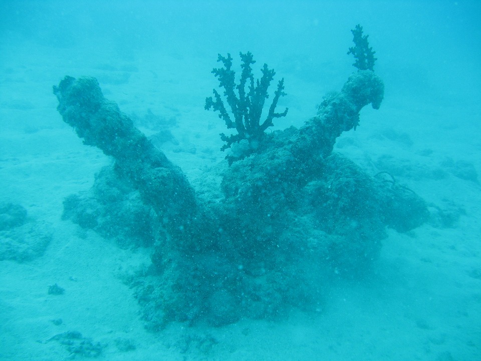 | これは、碇。 下半分の2本は砂の中に埋まっている。 |