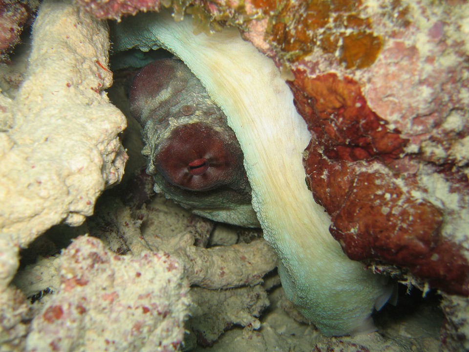 | 岩陰に潜んでいたタコの大将。 |