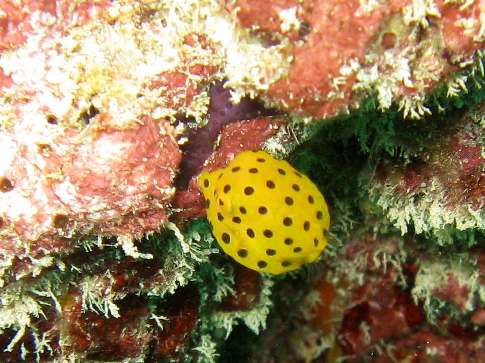 | 2018ナツのやいまラストダイブの日ののっけは、 大大大好きな、ミナミハコフグの赤ちゃんから! エントリーして(海に入って)すぐの根(岩)の陰にいた。 俺は個人的にこの魚が大好きで、ダイビングを始めて約17年だが、 ここまでちっこいのは初めて見た。 ここにいるのが最初から分かっていれば、 この1本はこの1匹の撮影に没頭していいのだが、いかんせん大人の事情でそうはいかなく、 数枚の写真が撮れただけだった。 この写真では、魚は左上を向いている。 大きさは1cm程度。 いつかゆっくり、1本をコイツに費やしたい。 |