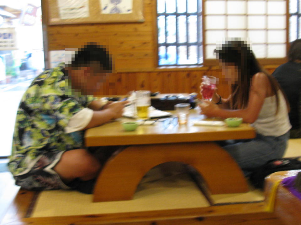 | このバカップルは、2人で予約なしで来店し、たまたま席が空いていたので入れたのだが、 席に着くやいなや、2人ともスマートフォンをいじくり始めた。 注文品が届くまで話もせずにずっとね。 なんなんだこの2人は。今時の若ぇのはこうなんか…。 コイツらが会計するときは、オトコがうだうだと紙幣を数え、オンナが小銭を用意する始末。 オトコなら、オンナは外で待たせて、諭吉くんでパツーンと支払えよ。 っと言いたくなるが、2人で何とかやりくりしてやいまに来たのかもしれないし、 まあ、勝手に仲良くやってくれ。 それより、俺の右隣に来た関西系のにいちゃん2人の会話にあきれた。 この店では、オリジナルのTシャツを売っており、その見本を店に飾ってある。 「ハブより怖い飲酒運転」なんていう粋なものの他、 「南西航空」のロゴをあしらったものもある。 で、それに気付いた にいちゃんA「なんせいこうくうってなんや?」 にいちゃんB「ああ、中国の航空会社や」 にいちゃんA「そうなんや」 こっら〜! 南西航空は、俺が愛する、今のJTA日本トランスオーシャン航空の前身や内科医那(ないかいな)。 まったくもーハラ立つわ〜。 と、もうちょっとのところでツッコミをいれるところだったが、何とかぐっとこらえたのだよ。 |