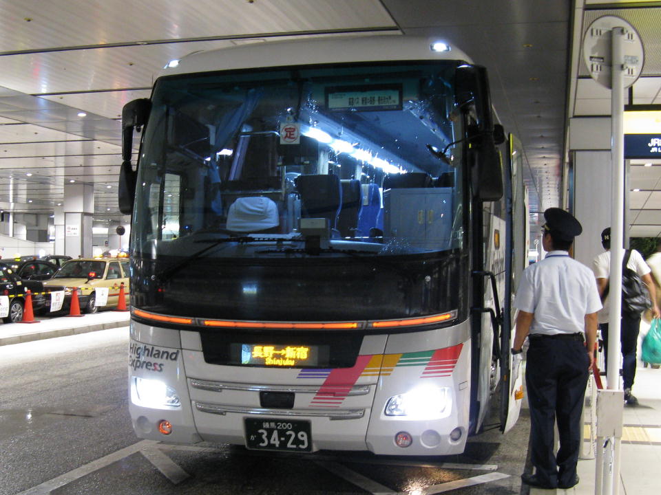| 最終の高速バスで信州からバスタ新宿に着いた。 結構激しい雨が降っている。 新宿で、羽田空港行きの最終のリムジンバスに乗り継ぐが、 バスタ新宿からの発車ではなく、新宿西口24番乗り場へ移動しないといけない。 前回は、やはり雨が降っていたので電車で羽田空港へ移動したのだが、 今回は雨に濡れずにリムジンバス乗り場まで行く方法を確認したかったので、やってみた。 しかし、どうも地下のみで移動することはできないようだったので、 結局、少し道路を歩き(=雨に濡れ)、やむを得ず入場券を買ってJR新宿駅構内を通り抜けることにした。 地下移動は今後も課題だ…。 |