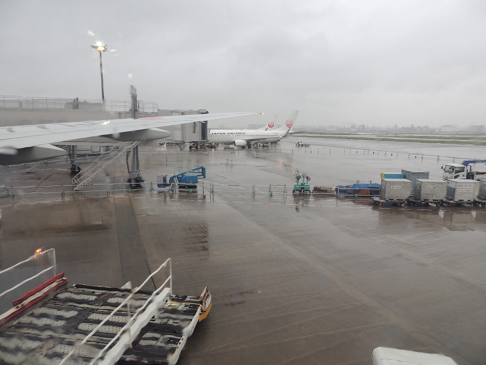 | 羽田空港の国際線ターミナルで夜を明かした。 いつもならローソンのこってり系弁当を喰うところなのだが、 今回はガマンして何も喰わなかった。 朝も雨だ。 でも、那覇はいいお天気みたいだゾ。 |