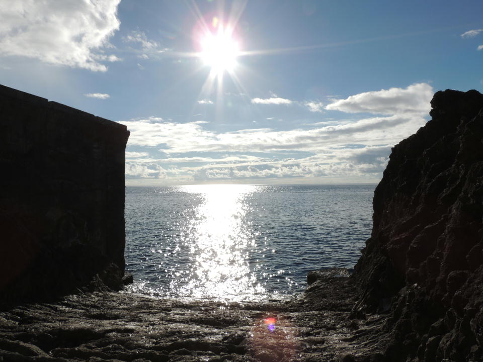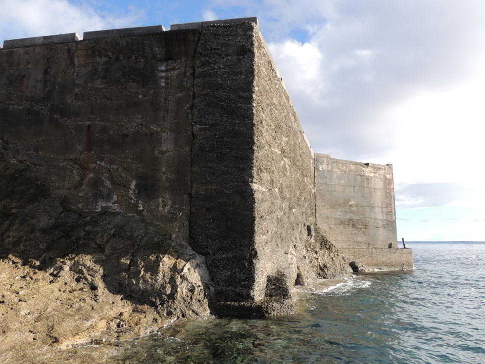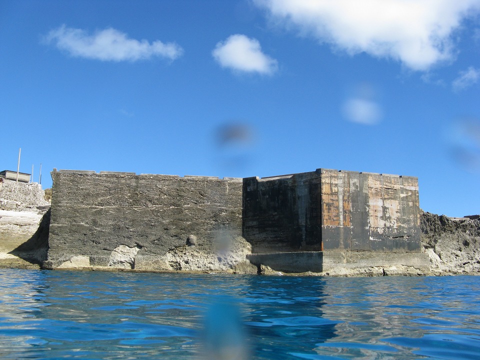 | 海から「上陸」を望む。 昔はここから上陸や荷揚げをしたり、 島で取れた燐を運び出したりしていたそうな。 |